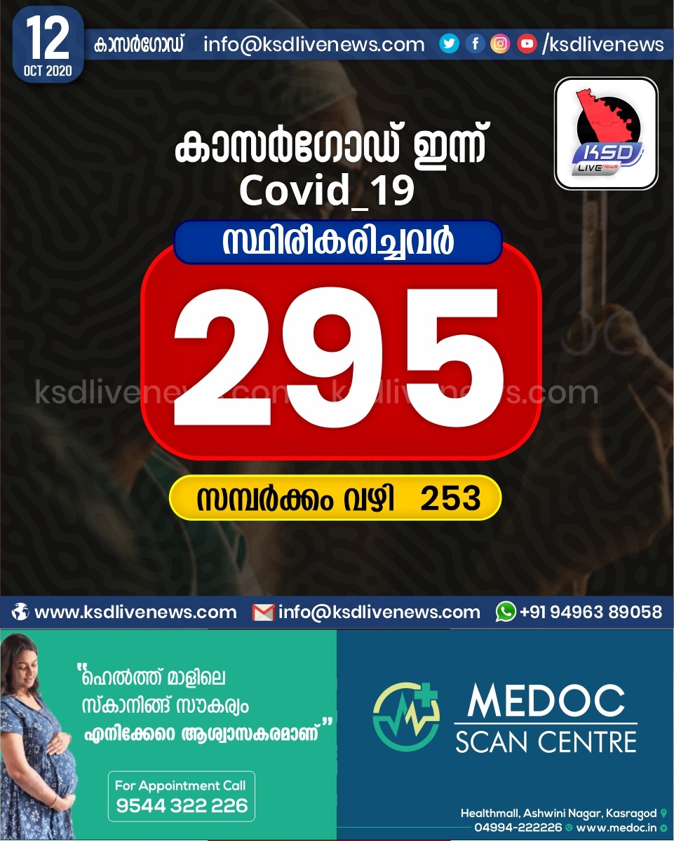 เดชเตเดฐเดพเดฆเตเดถเดฟเดเด เดเดพเดธเตผเดเตเดกเต เดเดฟเดฒเตเดฒเดฏเดฟเตฝ เดเดจเตเดจเต 295 เดชเตเตผเดเตเดเต เดเตเดตเดฟเดกเต เดธเตเดฅเดฟเดฐเตเดเดฐเดฟเดเตเดเต. เดธเดฎเตเดชเตผเดเตเดเด เดตเดดเดฟ 253 เดชเตเตผเดเตเดเตเด.October 12, 2020