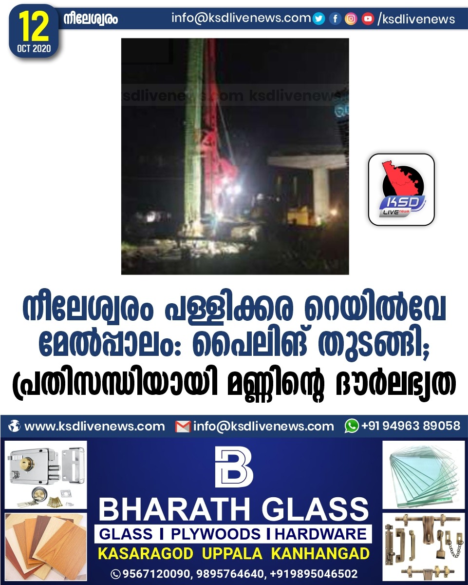 പ്രാദേശികം നീലേശ്വരം പള്ളിക്കര റെയിൽവേ മേൽപ്പാലം : പൈലിങ് തുടങ്ങി; പ്രതിസന്ധിയായി മണ്ണിന്റെ ദൗർലഭ്യതOctober 12, 2020