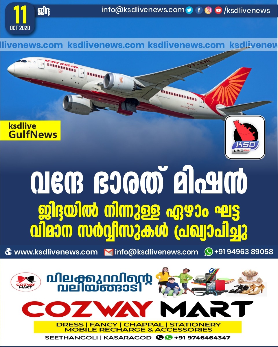 ദേശീയംവിദേശം വന്ദേ ഭാരത് മിഷൻ ; ജിദ്ദയിൽ നിന്നുള്ള ഏഴാം ഘട്ട വിമാന സർവ്വീസുകൾ പ്രഖ്യാപിച്ചുOctober 11, 2020