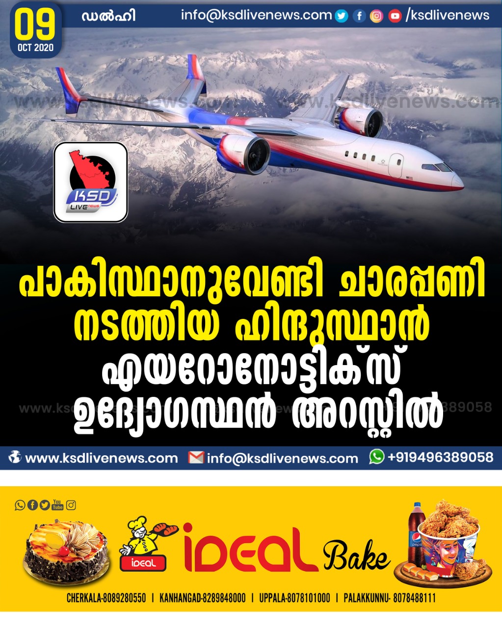 ദേശീയം പാകിസ്ഥാനുവേണ്ടി ചാരപ്പണി നടത്തിയ ഹിന്ദുസ്ഥാൻ എയറോനോട്ടിക്സ് ഉദ്യോഗസ്ഥൻ അറസ്റ്റിൽOctober 9, 2020