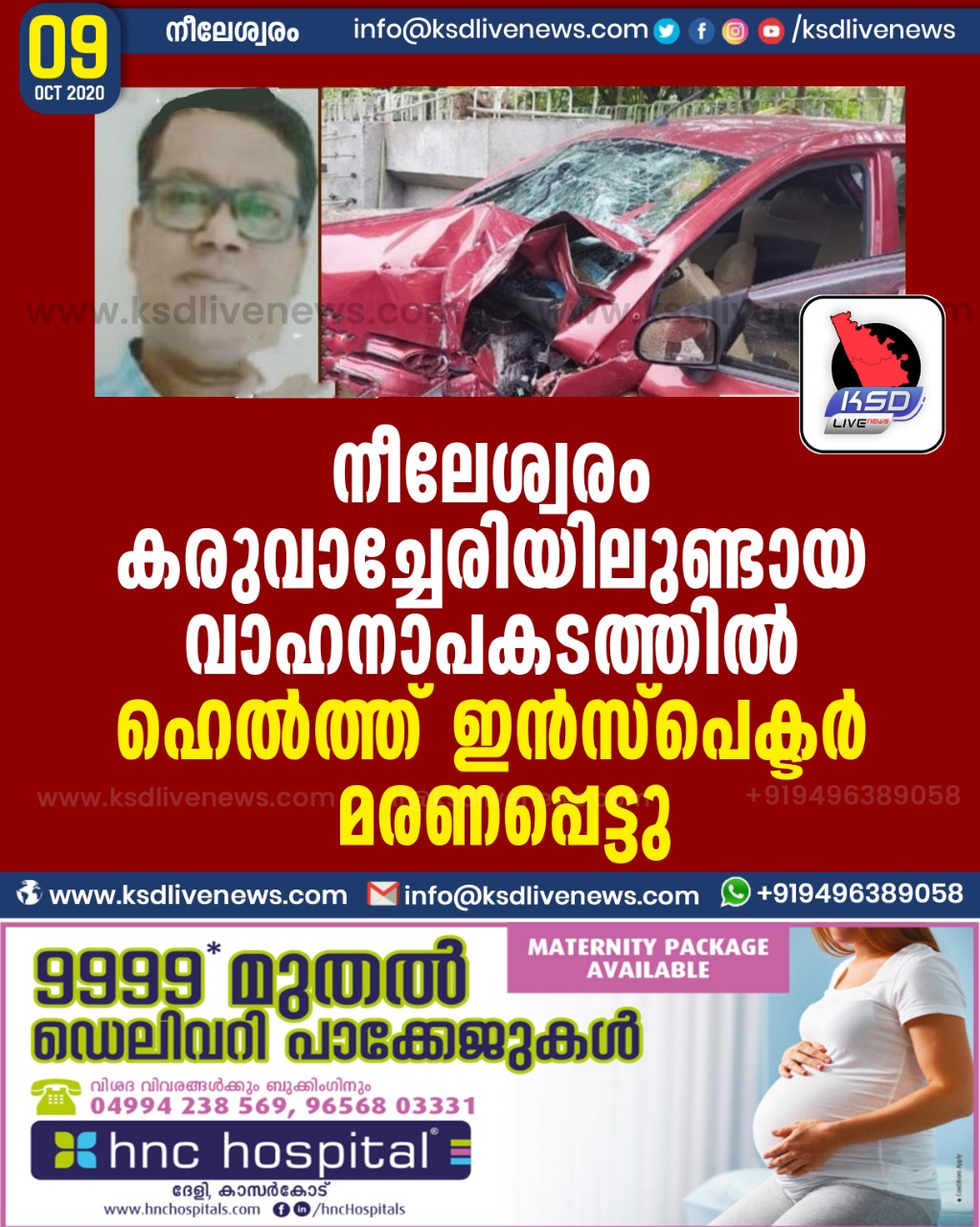 പ്രാദേശികം നീലേശ്വരം കരുവാച്ചേരിയിലുണ്ടായ വാഹനാപകടത്തിൽ ഹെൽത്ത് ഇൻസ്പെക്ടർ മരണപ്പെട്ടുOctober 9, 2020