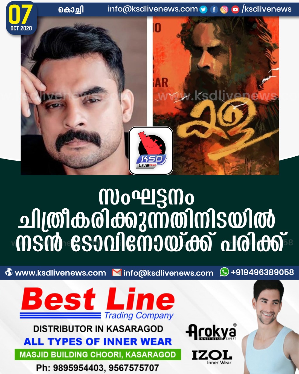 സംഘട്ടനം ചിത്രീകരിക്കുന്നതിനിടയിൽ നടൻ ടോവിനോയ്ക്ക് പരിക്ക്