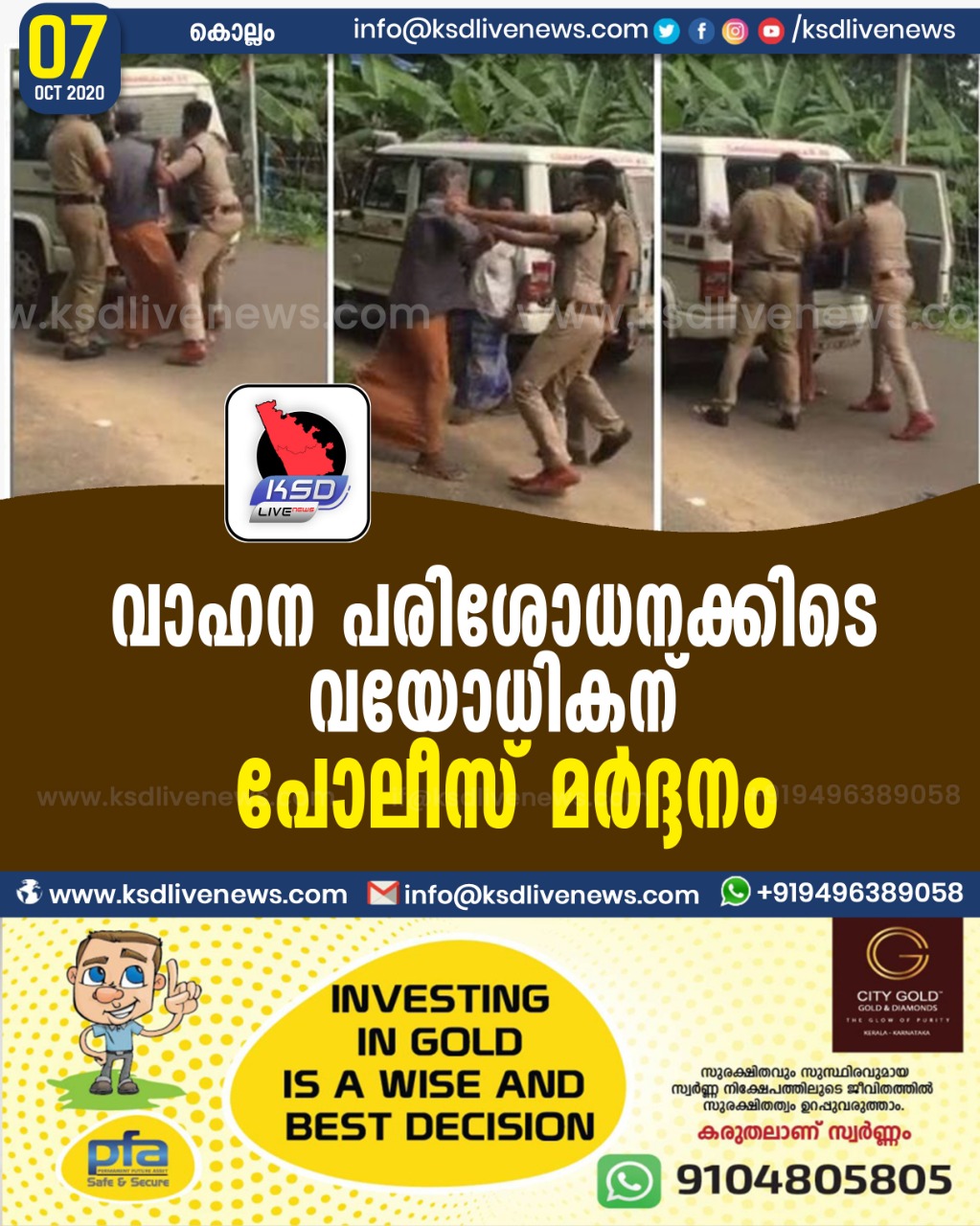 വാഹന പരിശോധനക്കിടെ വയോധികൻ പോലീസ് മർദ്ദനം