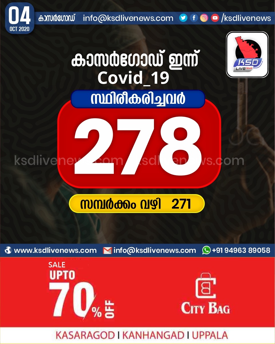 เดชเตเดฐเดพเดฆเตเดถเดฟเดเด เดเดพเดธเตผเดเตเดกเต เดเดฟเดฒเตเดฒเดฏเดฟเตฝ เดเดจเตเดจเต 278 เดชเตเตผเดเตเดเต เดเตเดตเดฟเดกเต เดธเตเดฅเดฟเดฐเตเดเดฐเดฟเดเตเดเต. เดธเดฎเตเดชเตผเดเตเดเด เดตเดดเดฟ 271 เดชเตเตผเดเตเดเตเด.October 4, 2020