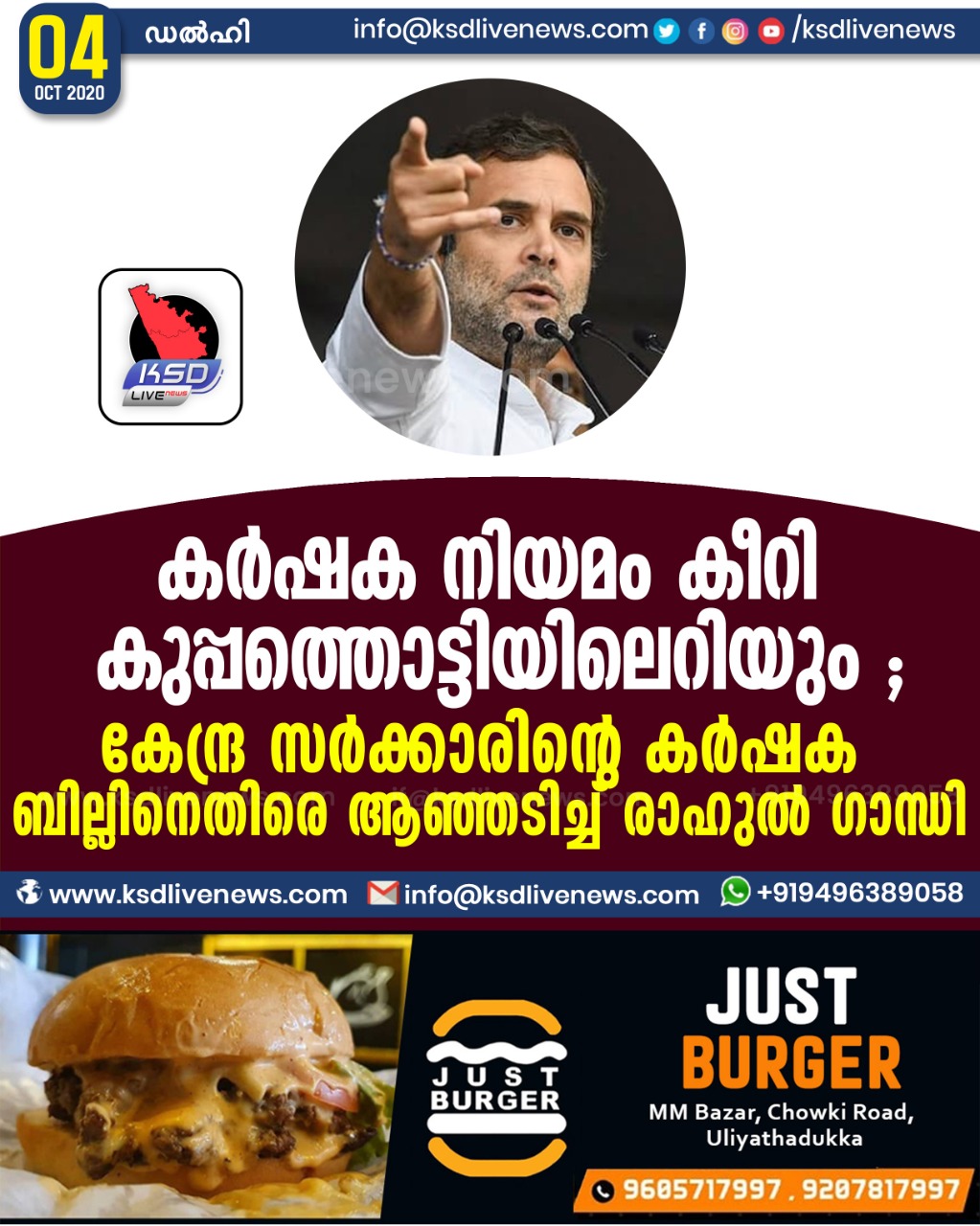 ദേശീയം കർഷക നിയമം കീറി കുപ്പത്തൊട്ടിയിലെറിയും ; കേന്ദ്ര സർക്കാരിന്റെ കർഷക ബില്ലിനെതിരെ ആഞ്ഞടിച്ച് രാഹുൽ ഗാന്ധിOctober 4, 2020