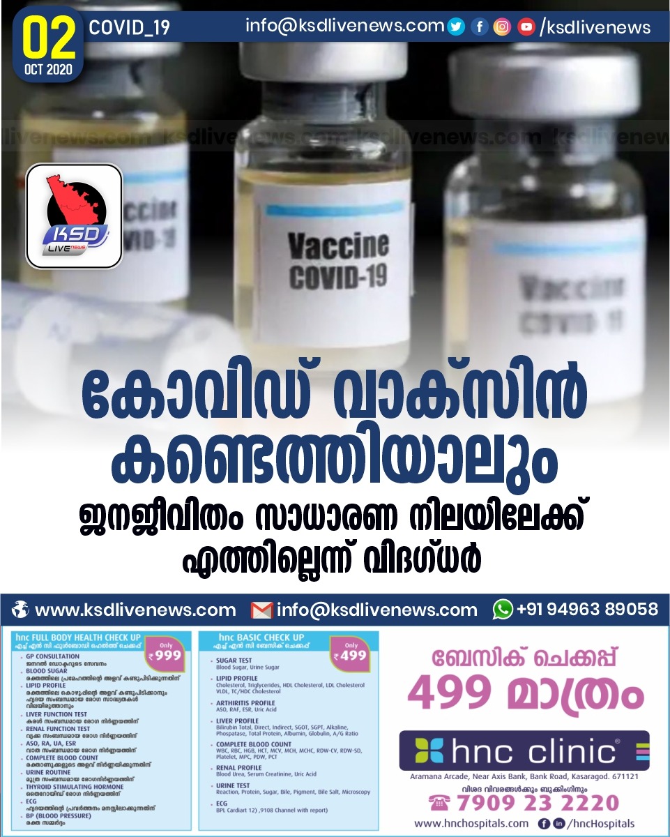 കേരളംദേശീയം കോവിഡ് വാക്സിൻ കണ്ടെത്തിയാലും ജനജീവിതം സാധാ രണ നിലയിലേക്ക് എത്തില്ലെന്ന് വിദഗ്ധർOctober 2, 2020