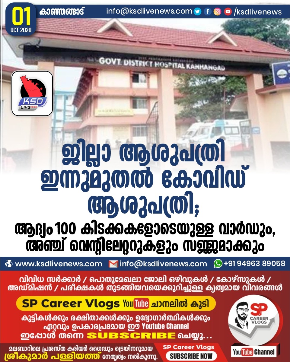 പ്രാദേശികം ജില്ലാ ആശുപത്രി ഇന്നുമുതൽ കോവിഡ് ആശുപത്രി; ആദ്യം 100 കിടക്കകളോടെയുള്ള വാർഡും, അഞ്ച് വെന്റിലേറ്ററുകളും സജ്ജമാക്കുംOctober 1, 2020