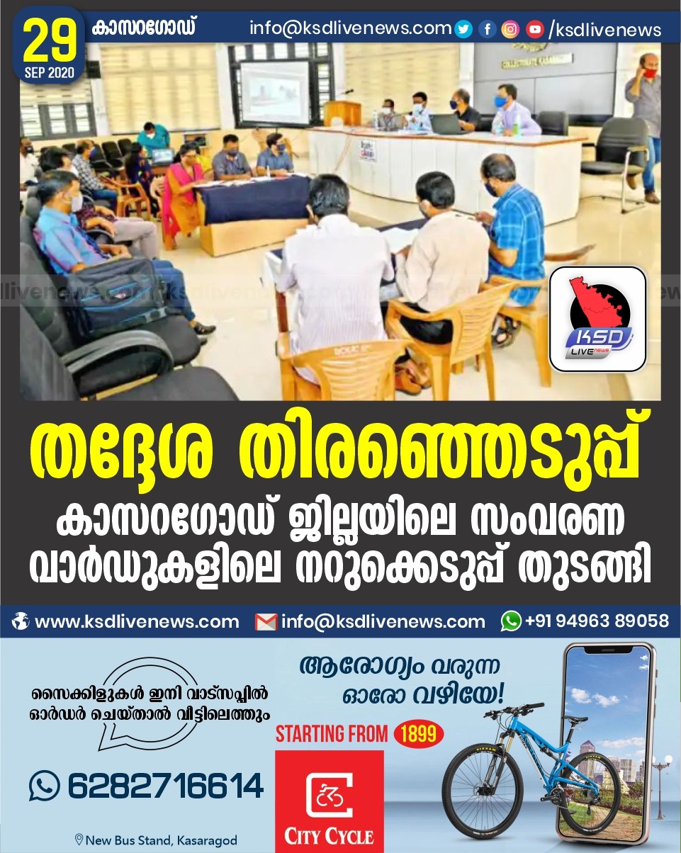 പ്രാദേശികം തദ്ദേശ തിരഞ്ഞെടുപ്പ് ;കാസറഗോഡ് ജില്ലയിലെ സംവരണ വാർഡുകളിലെ നറുക്കെടുപ്പ് തുടങ്ങിSeptember 29, 2020