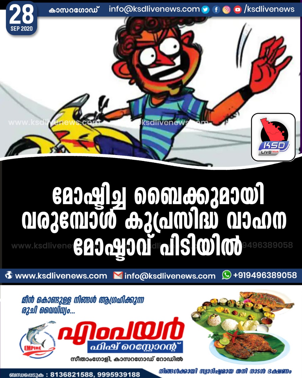 മോഷ്ടിച്ച ബൈക്കുമായി വരുമ്പോൾ കുപ്രസിദ്ധ വാഹന മോഷ്ടാവ് പിടിയിൽ