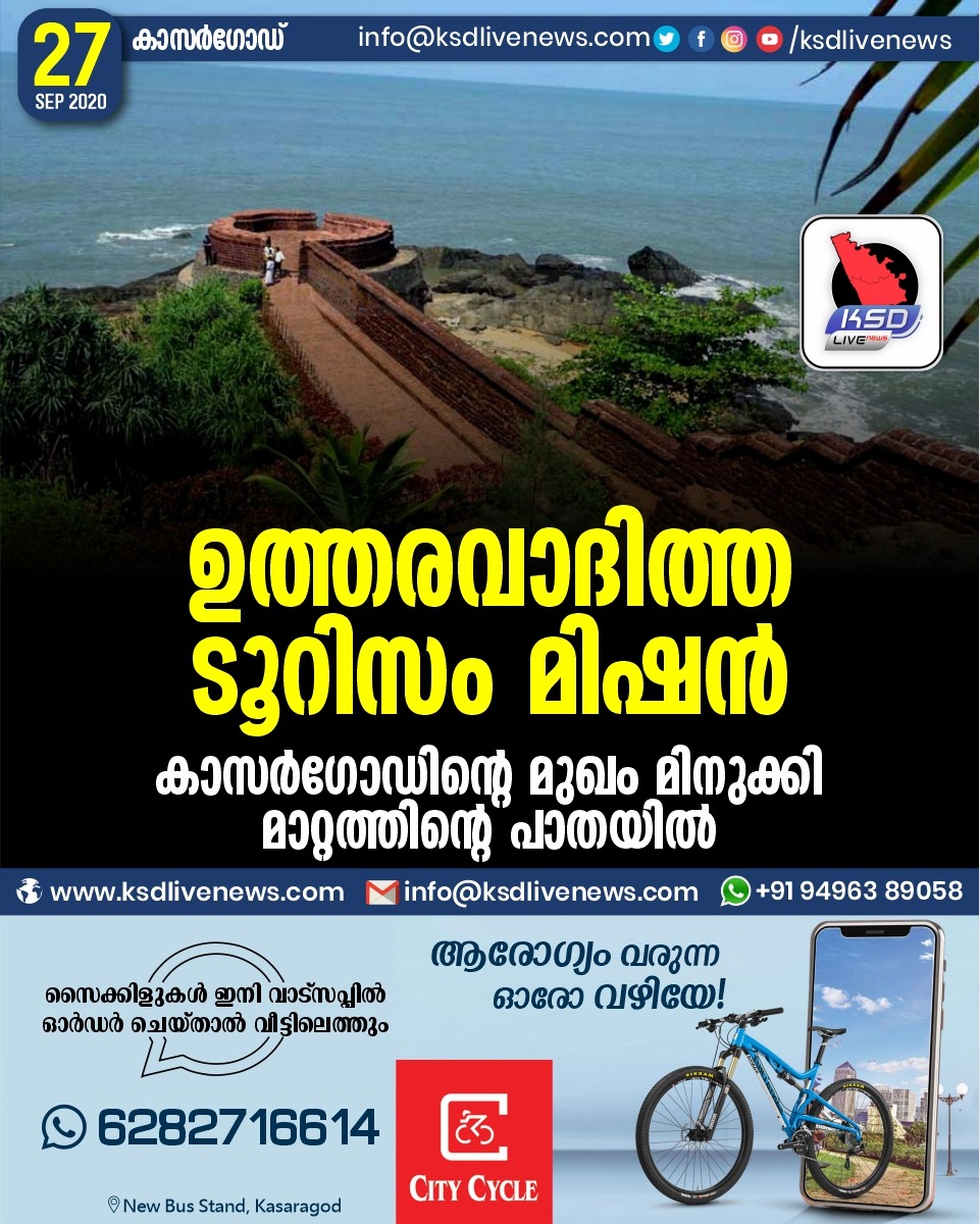 പ്രാദേശികം ഉത്തരവാദിത്ത ടൂറിസം മിഷൻ : കാസർഗോഡിന്റെ മുഖം മിനുക്കി മാറ്റത്തിന്റെ പാതയിൽSeptember 27, 2020