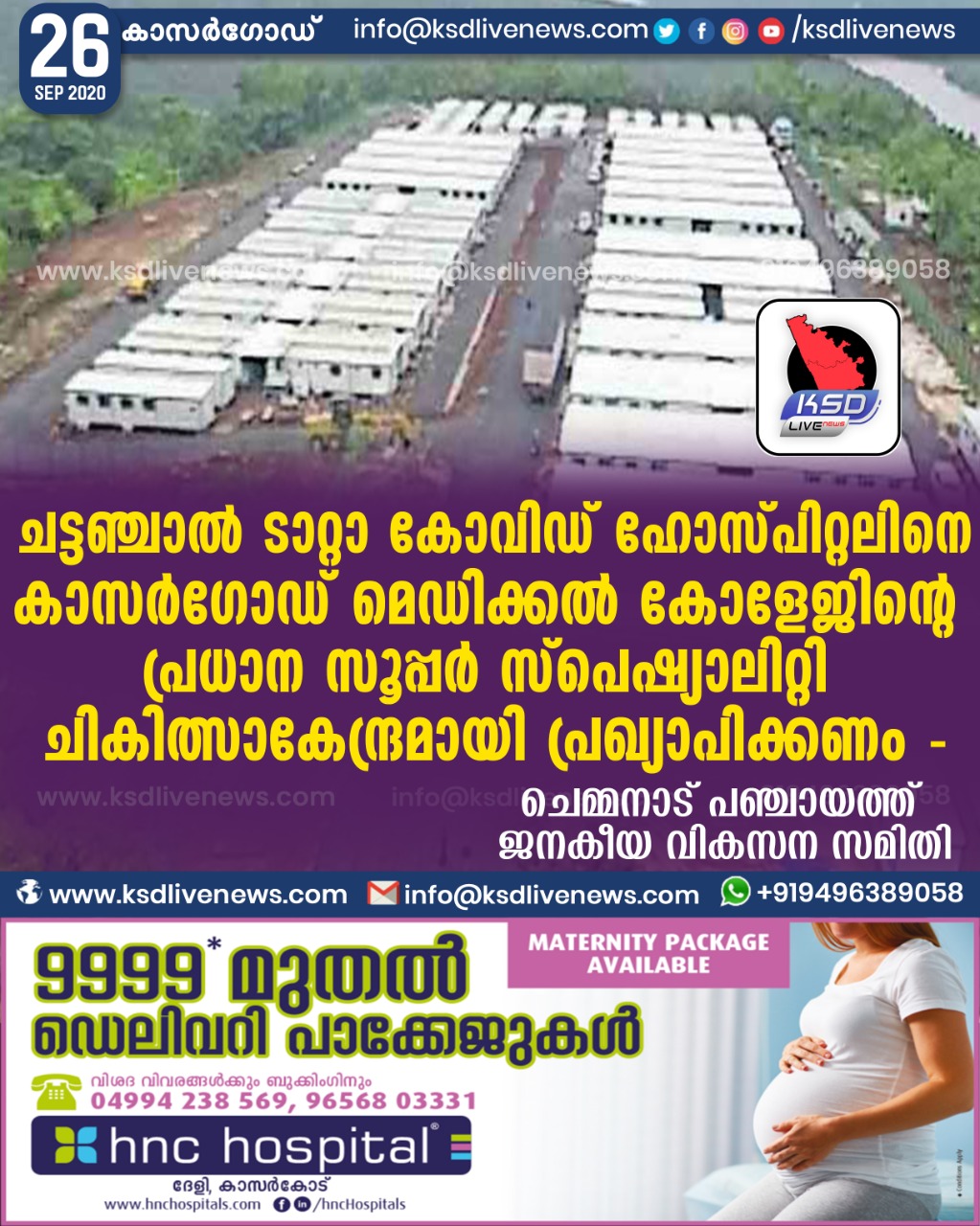 പ്രാദേശികം ചട്ടഞ്ചാൽ ടാറ്റാ കോവിഡ് ഹോസ്പിറ്റൽ കാസർഗോഡ് മെഡിക്കൽ കോളേജിന്റെ പ്രധാന സൂപ്പർ സ്പെഷ്യാലിറ്റി ചികിത്സാകേന്ദ്രമായി പ്രഖ്യാപിക്കണം –ചെമ്മനാട് പഞ്ചായത്ത് ജനകീയ വികസന സമിതിSeptember 26, 2020