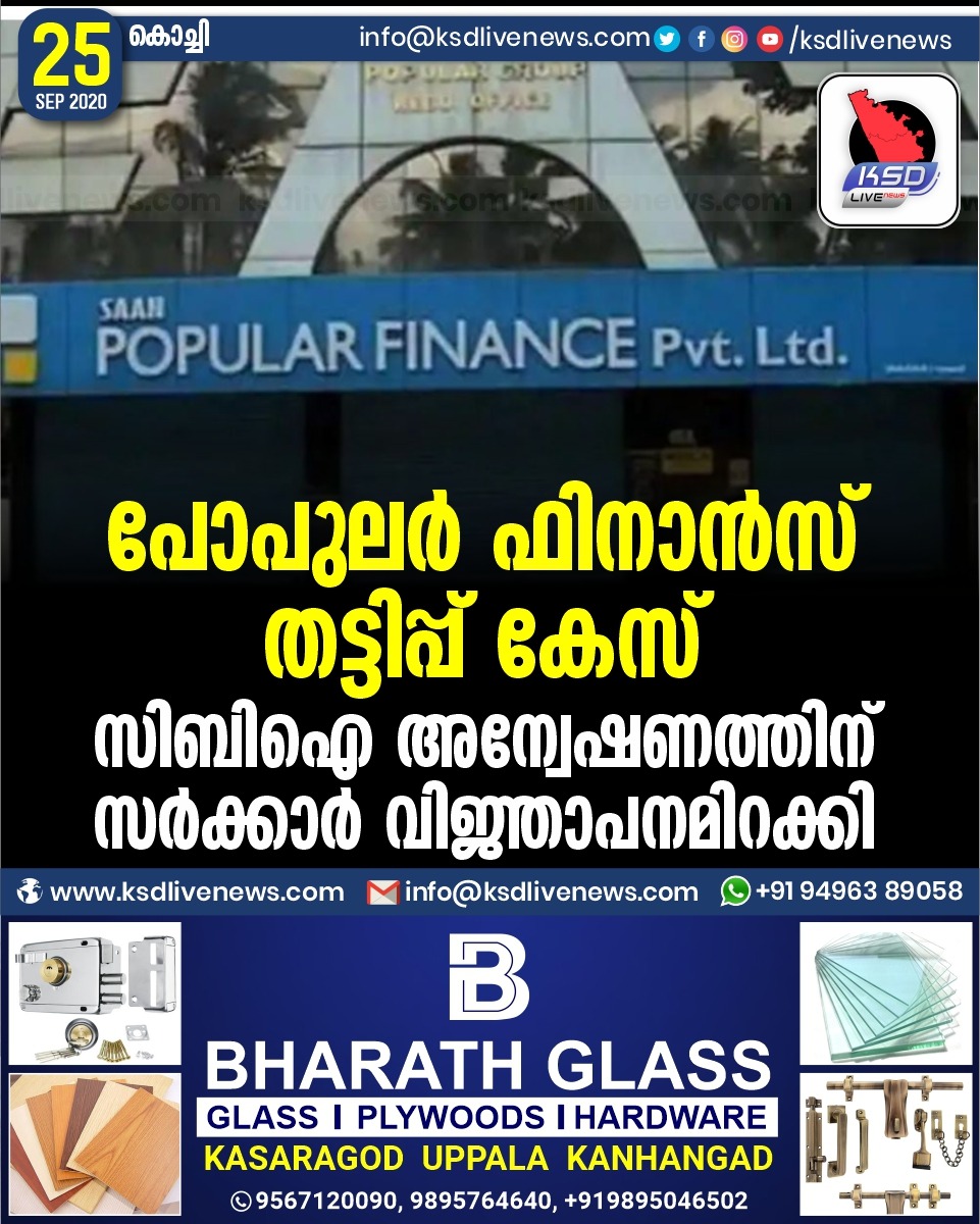 ദേശീയം പോപുലർ ഫിനാൻസ് തട്ടിപ്പ് കേസ് : സിബിഐ അന്വേഷണത്തിന് സര്ക്കാര് വിജ്ഞാപനമിറക്കിSeptember 25, 2020