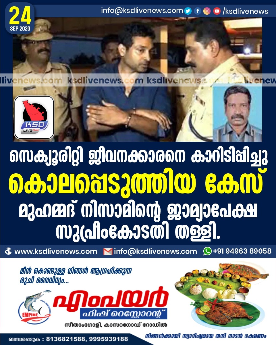 കേരളംദേശീയം സെക്യൂരിറ്റി ജീവനക്കാരനെ കാറിടിപ്പിച്ചു കൊലപ്പെടുത്തിയ കേസ് :മുഹമ്മദ് നിസാമിന്റെ ജാമ്യാപേക്ഷ സുപ്രീംകോടതി തള്ളി.September 24, 2020