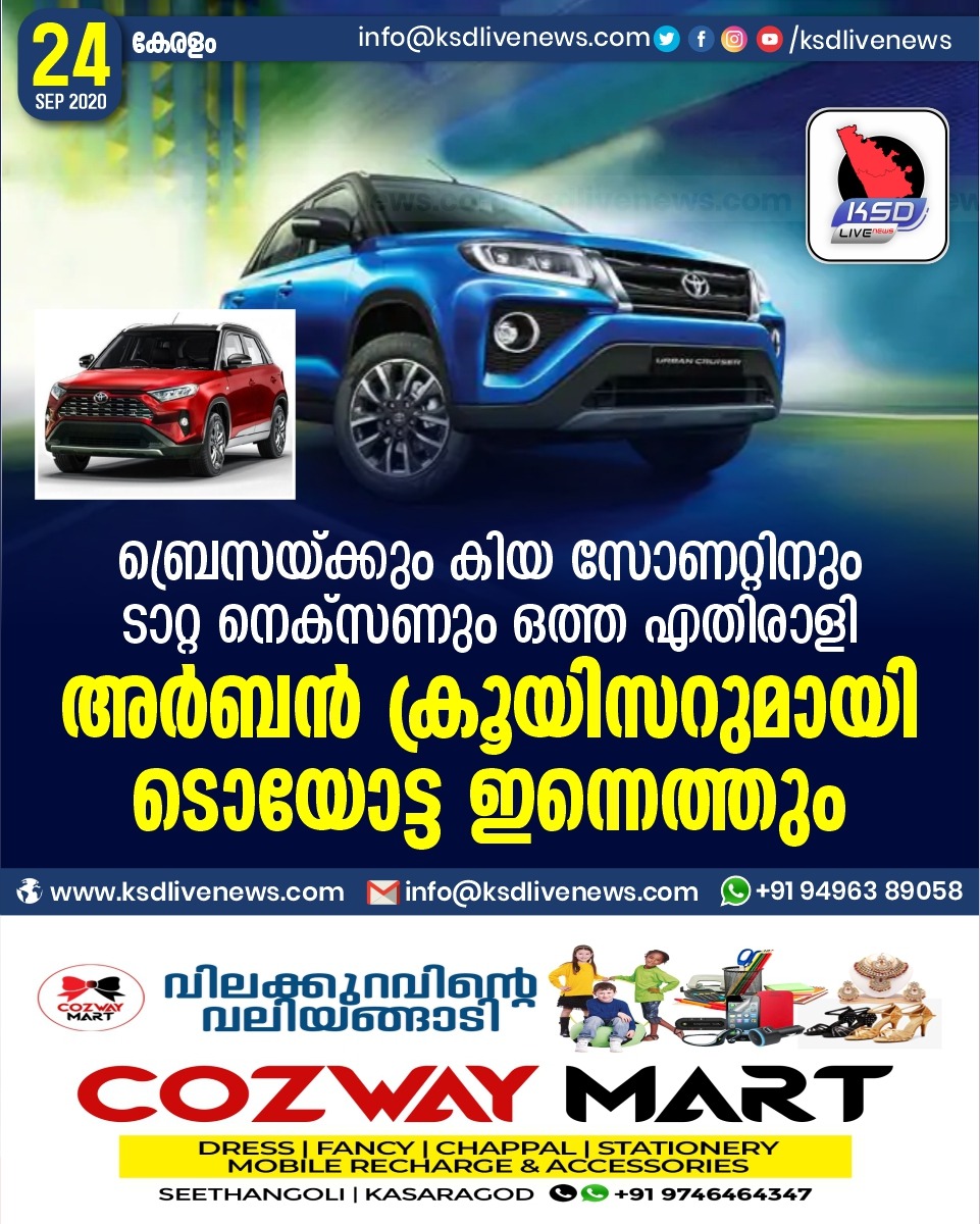 കേരളംപ്രാദേശികം ബ്രെസയ്ക്കും കിയ സോണറ്റിനും ടാറ്റ നെക്സണും ഒത്ത എതിരാളി ; അർബൻ ക്രൂയിസറുമായി ടൊയോട്ട ഇന്നെത്തുംSeptember 24, 2020