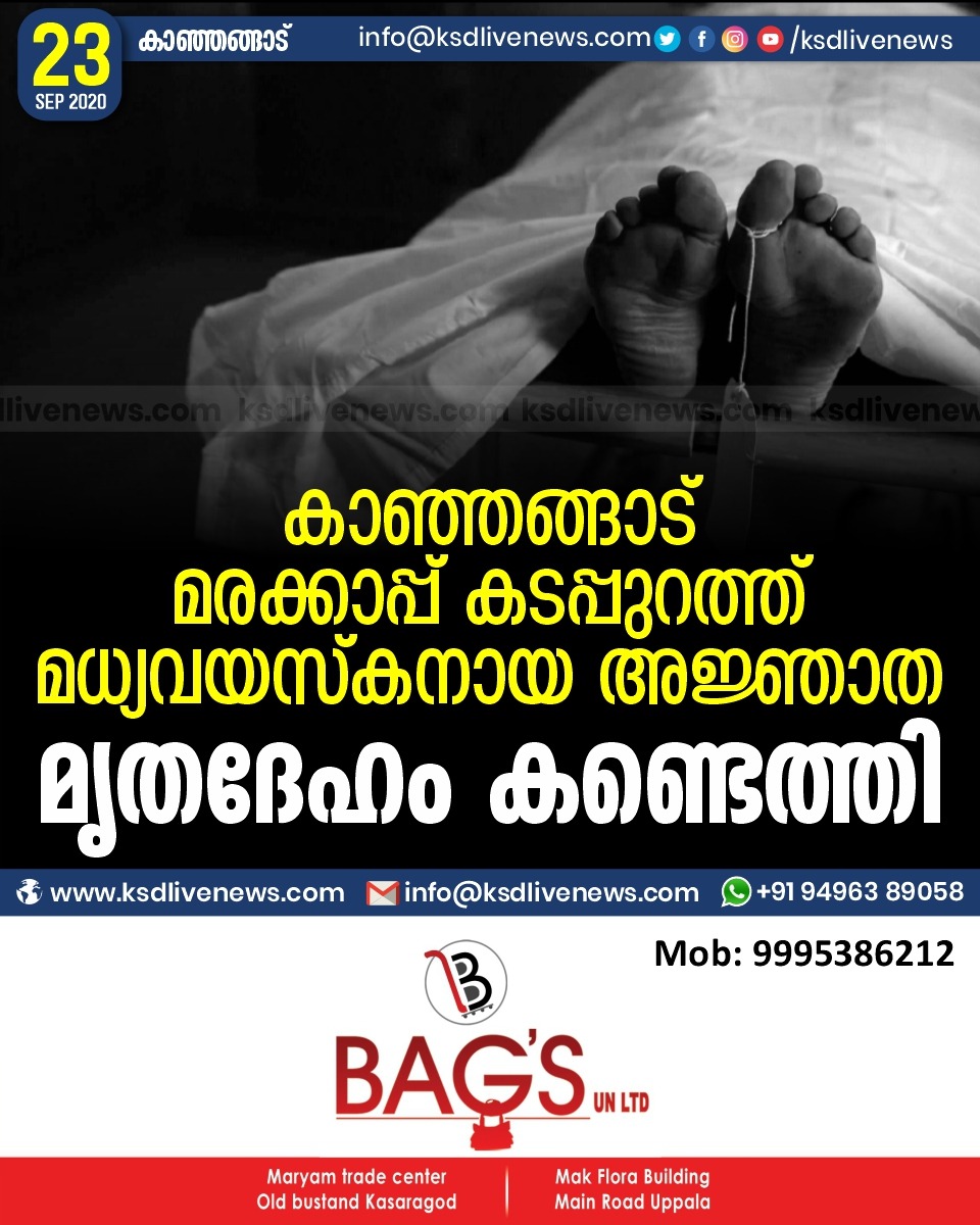 പ്രാദേശികം കാഞ്ഞങ്ങാട് മരക്കാപ്പ് കടപ്പുറത്ത് മധ്യവയസ്കനായ അജ്ഞാത മൃതദേഹം കണ്ടെത്തിSeptember 23, 2020