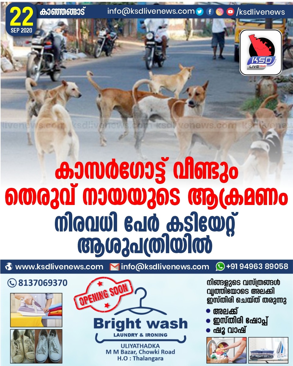 പ്രാദേശികം കാസർഗോട്ട് വീണ്ടും തെരുവ് നായയുടെ ആക്രമണം ; നിരവധി പേർ കടിയേറ്റ് ആശുപത്രിയിൽSeptember 22, 2020