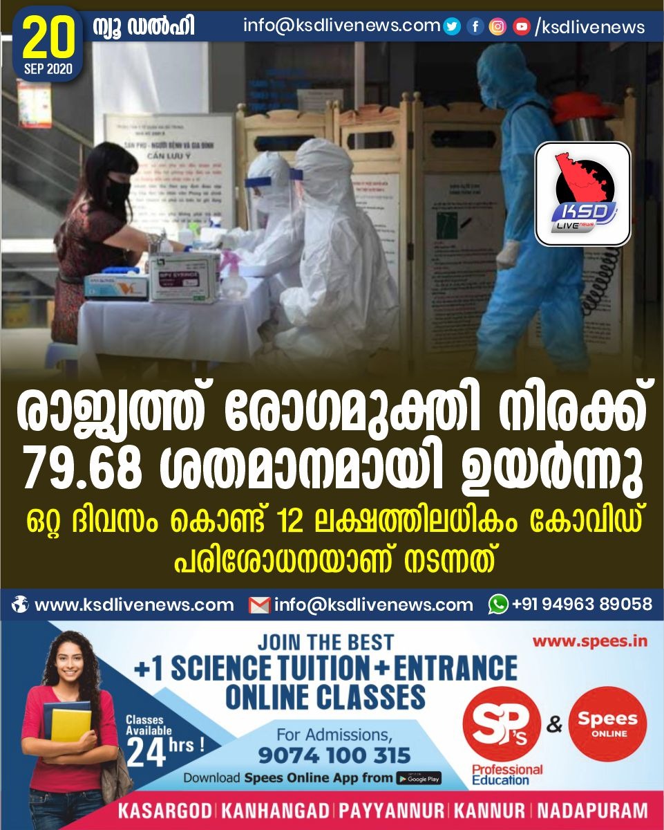 เดฆเตเดถเตเดฏเด เดฐเดพเดเตเดฏเดคเตเดคเต เดฐเตเดเดฎเตเดเตเดคเดฟ เดจเดฟเดฐเดเตเดเต 79.68 เดถเดคเดฎเดพเดจเดฎเดพเดฏเดฟ เดเดฏเดฐเตโเดจเตเดจเต ;เดเดฑเตเดฑ เดฆเดฟเดตเดธเด เดเตเดฃเตเดเต 12 เดฒเดเตเดทเดคเตเดคเดฟเดฒเดงเดฟเดเด เดเตเดตเดฟเดกเต เดชเดฐเดฟเดถเตเดงเดจเดฏเดพเดฃเต เดจเดเดจเตเดจเดคเตSeptember 20, 2020