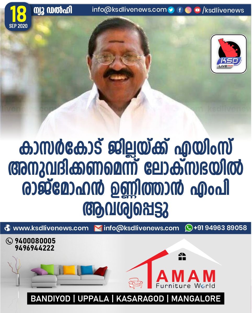 പ്രാദേശികം കാസര്കോട് ജില്ലയ്ക്ക് എയിംസ് അനുവദിക്കണമെന്ന് ലോക്സഭയിൽ രാജ്മോഹന് ഉണ്ണിത്താന് എംപി ആവശ്യപ്പെട്ടുSeptember 18, 2020