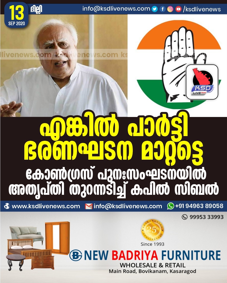 ദേശീയം എങ്കിൽ പാർട്ടി ഭരണഘടന മാറ്റട്ടെ ; കോൺഗ്രസ് പുനഃസംഘടനയിൽ അതൃപ്തി തുറന്നടിച്ച് കപിൽ സിബൽSeptember 13, 2020