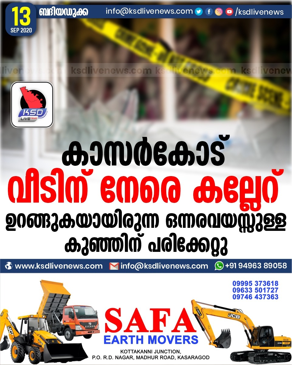 പ്രാദേശികം കാസര്കോട് വീടിന് നേരെ കല്ലേറ് ; ഉറങ്ങുകയായിരുന്ന ഒന്നരവയസ്സുള്ള കുഞ്ഞിന് പരിക്കേറ്റുSeptember 13, 2020