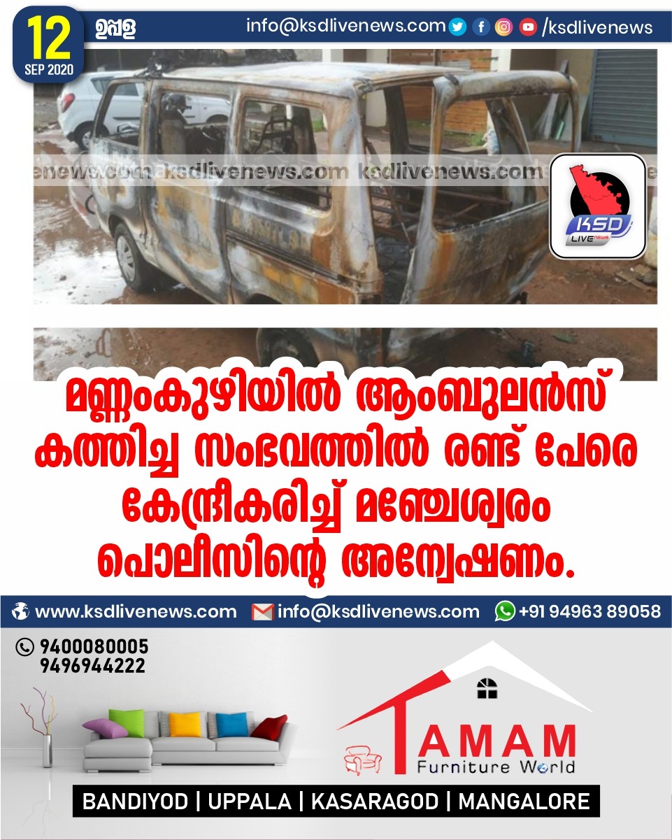 പ്രാദേശികം മണ്ണംകുഴിയില് ആംബുലന്സ് കത്തിച്ച സംഭവത്തില് രണ്ട് പേരെ കേന്ദ്രീകരിച്ച് മഞ്ചേശ്വരം പൊലീസിന്റെ അന്വേഷണം.September 12, 2020