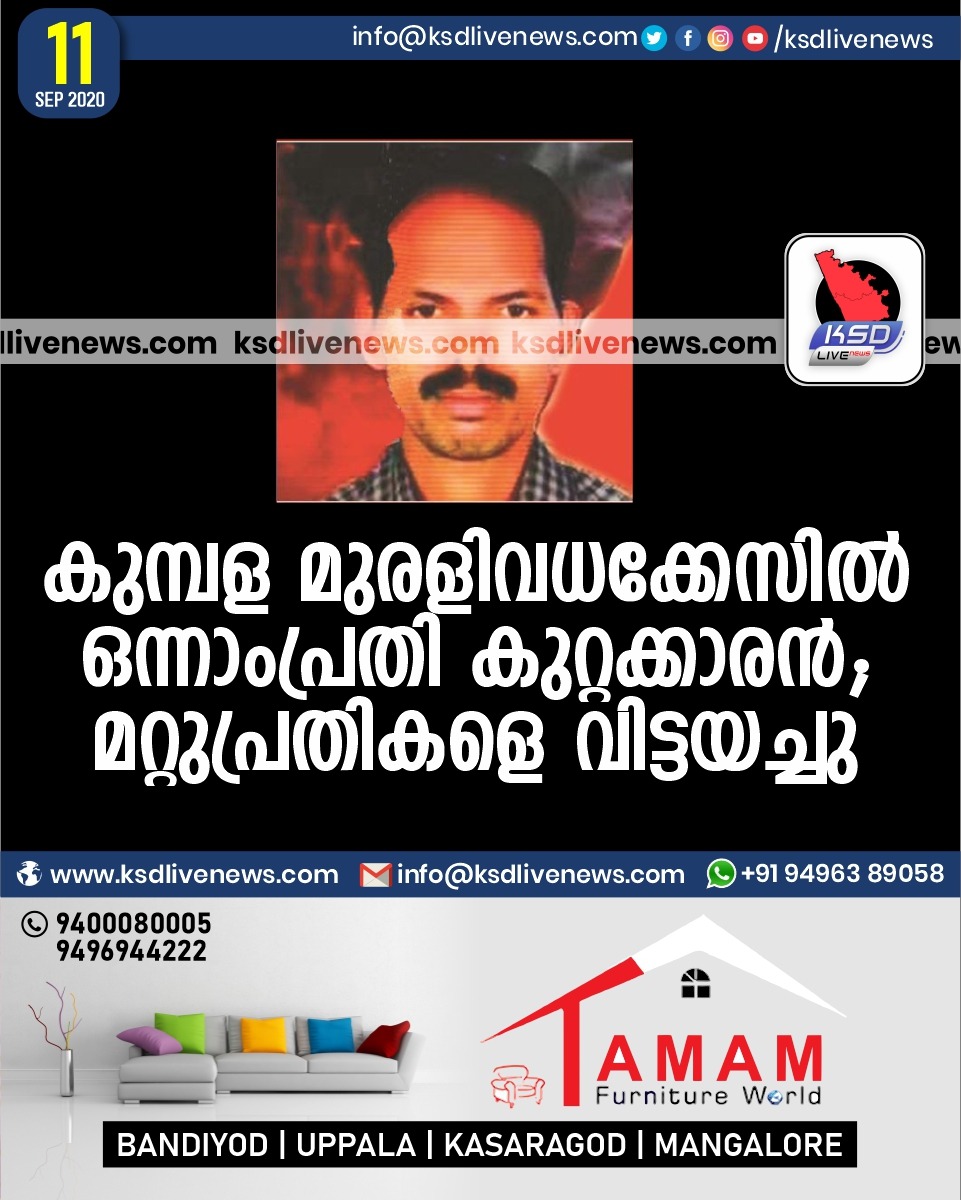 പ്രാദേശികം കുമ്പള മുരളിവധക്കേസില് ഒന്നാംപ്രതി കുറ്റക്കാരന്; മറ്റുപ്രതികളെ വിട്ടയച്ചുSeptember 11, 2020