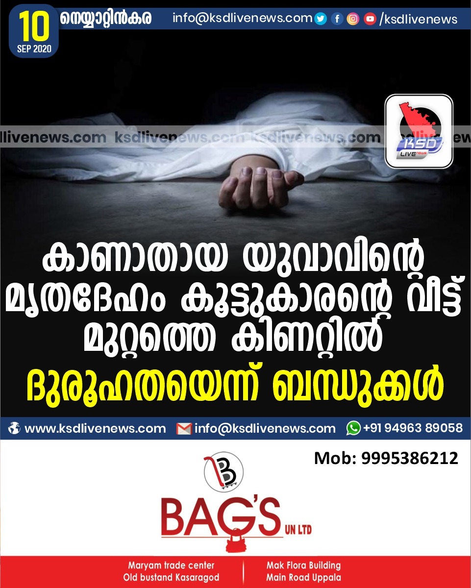 കേരളം കാണാതായ യുവാവിന്റെ മൃതദേഹം കൂട്ടുകാരന്റെ വീട്ട് മുറ്റത്തെ കിണറ്റിൽ ;ദുരൂഹതയെന്ന് ബന്ധുക്കൾSeptember 10, 2020