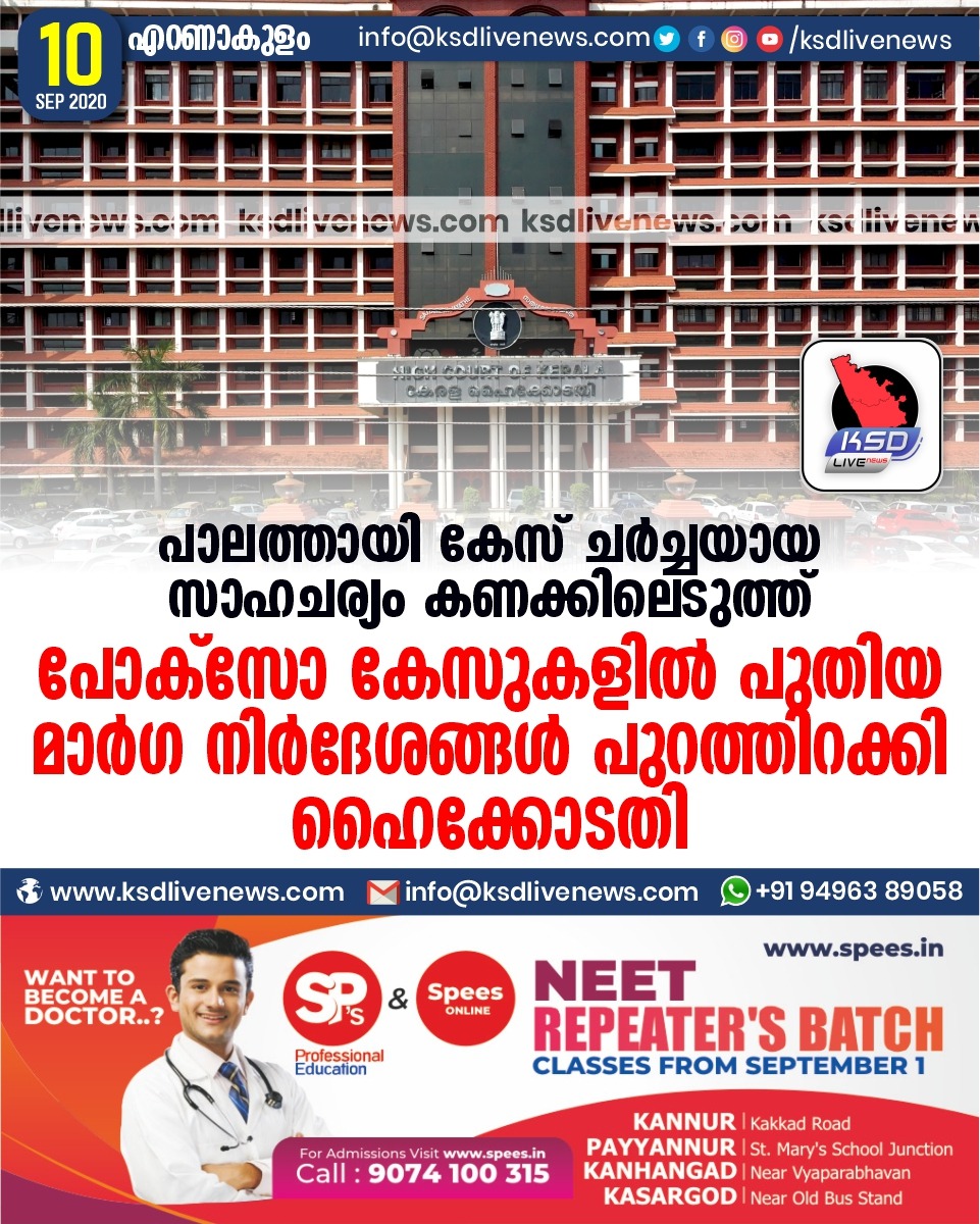 കേരളം പാലത്തായി കേസ് ചർച്ചയായ സാഹചര്യം കണക്കിലെടുത്ത്പോക്സോ കേസുകളില് പുതിയ മാര്ഗ നിര്ദേശങ്ങള് പുറത്തിറക്കി ഹൈക്കോടതിSeptember 10, 2020