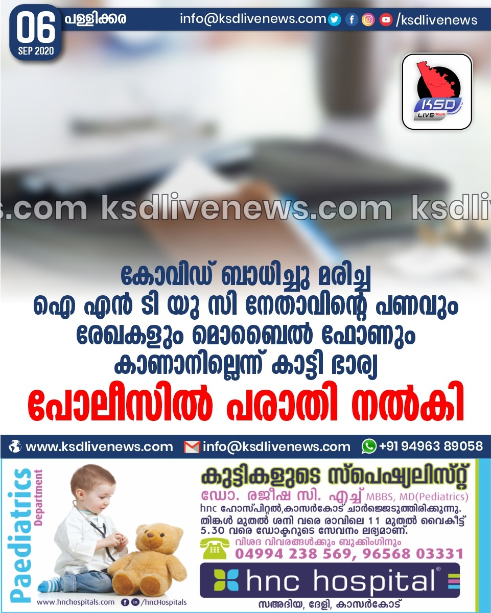 เดชเตเดฐเดพเดฆเตเดถเดฟเดเด เดเตเดตเดฟเดกเต เดฌเดพเดงเดฟเดเตเดเต เดฎเดฐเดฟเดเตเด เด เดเตป เดเดฟ เดฏเต เดธเดฟ เดจเตเดคเดพเดตเดฟเดจเตเดฑเต เดชเดฃเดตเตเด เดฐเตเดเดเดณเตเด เดฎเตเดฌเตเตฝ เดซเตเดฃเตเด เดเดพเดฃเดพเดจเดฟเดฒเตเดฒเตเดจเตเดจเต เดเดพเดเตเดเดฟ เดญเดพเดฐเตเดฏ เดชเตเดฒเตเดธเดฟเตฝ เดชเดฐเดพเดคเดฟ เดจเตฝเดเดฟSeptember 6, 2020