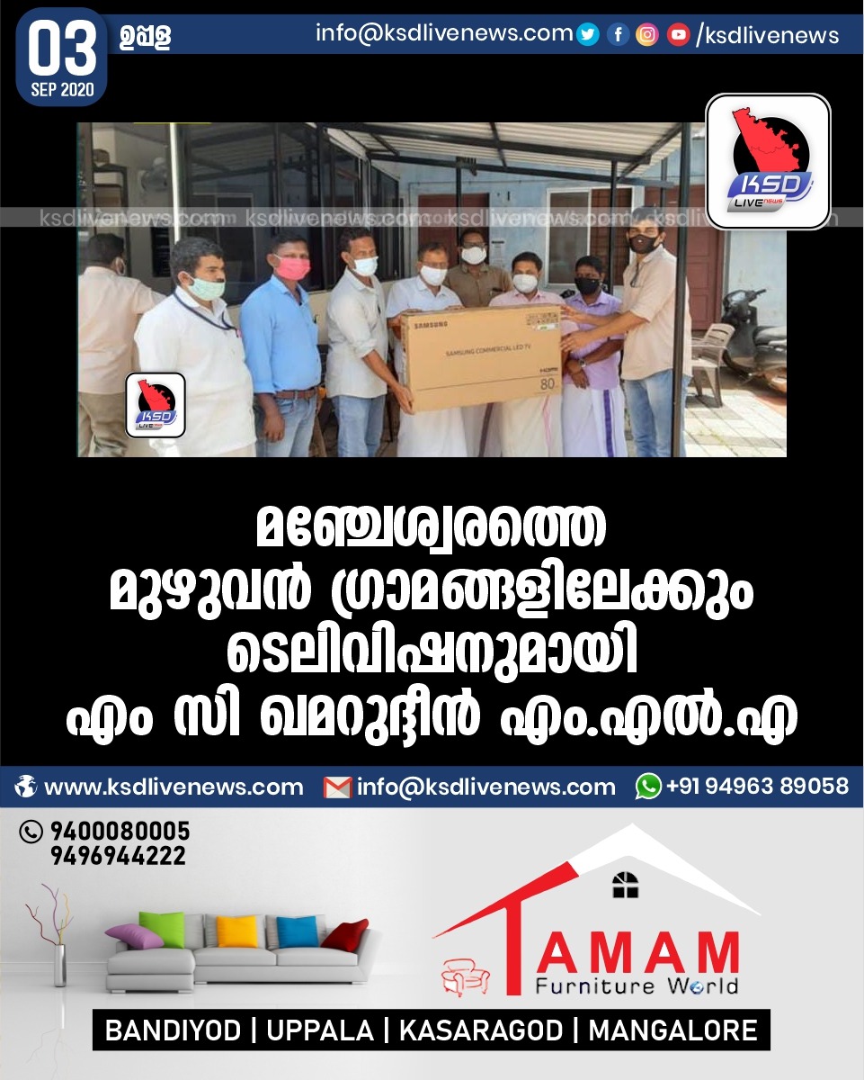 പ്രാദേശികം മഞ്ചേശ്വരത്തെ മുഴുവൻ ഗ്രാമങ്ങളിലേക്കും ടെലിവിഷനുമായി എം സി ഖമറുദ്ദീൻ എം.എൽ.എSeptember 3, 2020
