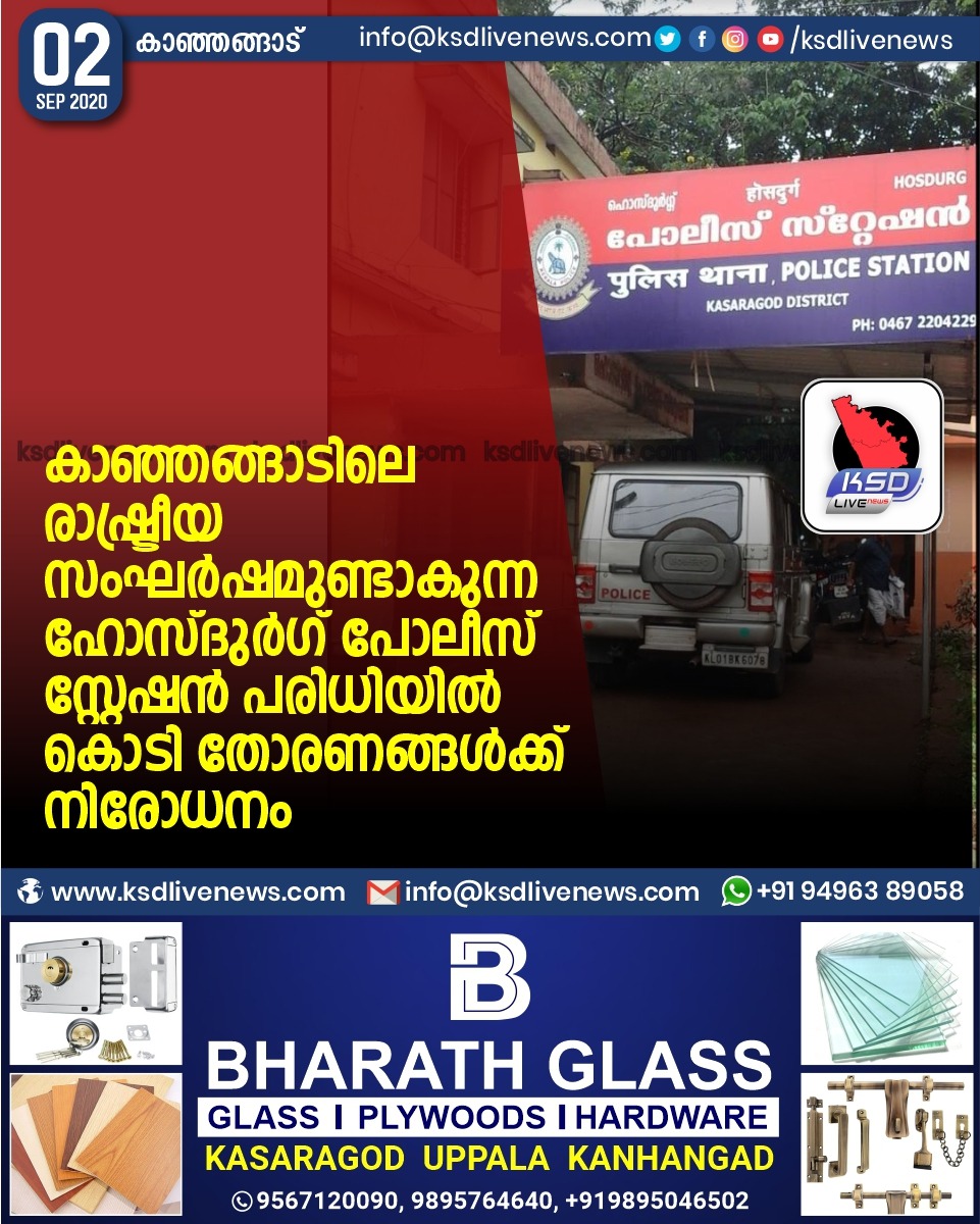 പ്രാദേശികം കാഞ്ഞങ്ങാടിലെ രാഷ്ട്രീയ സംഘർഷമുണ്ടാകുന്ന ഹോസ്ദുർഗ് പോലീസ് സ്റ്റേഷൻ പരിധിയിൽ കൊടി തോരണങ്ങൾക്ക് നിരോധനംSeptember 2, 2020