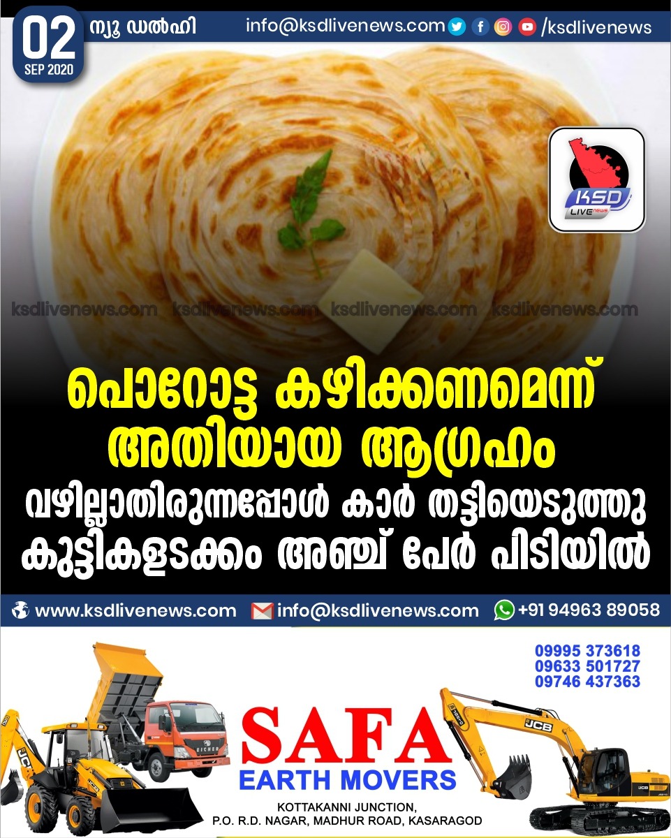 ദേശീയം പൊറോട്ട കഴിക്കണമെന്ന് അതിയായ ആഗ്രഹം ;വഴില്ലാതിരുന്നപ്പോൾ കാർ തട്ടിയെടുത്തു ;കുട്ടികളടക്കം അഞ്ച് പേർ പിടിയിൽSeptember 2, 2020