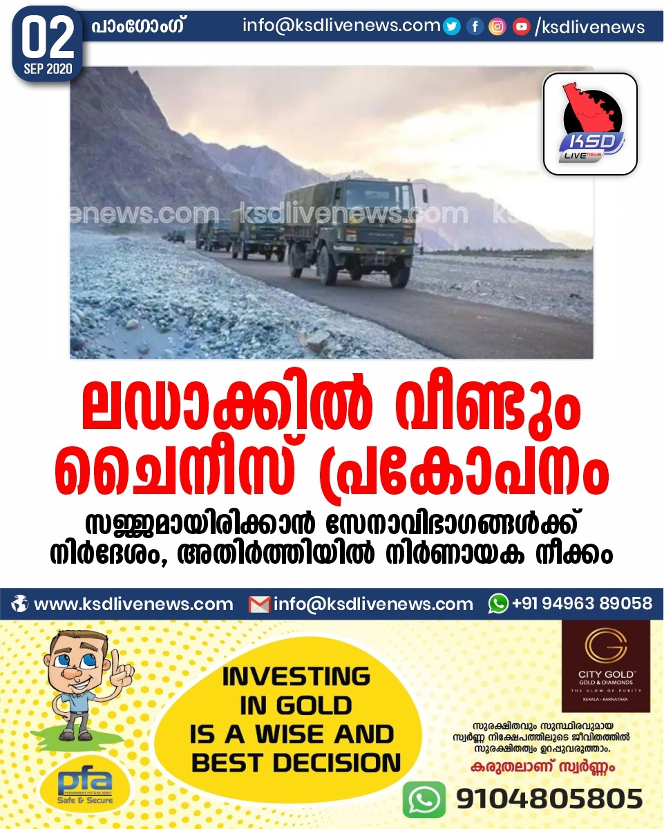 ദേശീയം ലഡാക്കിൽ വീണ്ടും ചൈനീസ് പ്രകോപനം ; സജ്ജമായിരിക്കാൻ സേനാവിഭാഗങ്ങൾക്ക് നിർദേശം , അതിർത്തിയിൽ നിർണായക നീക്കംSeptember 2, 2020