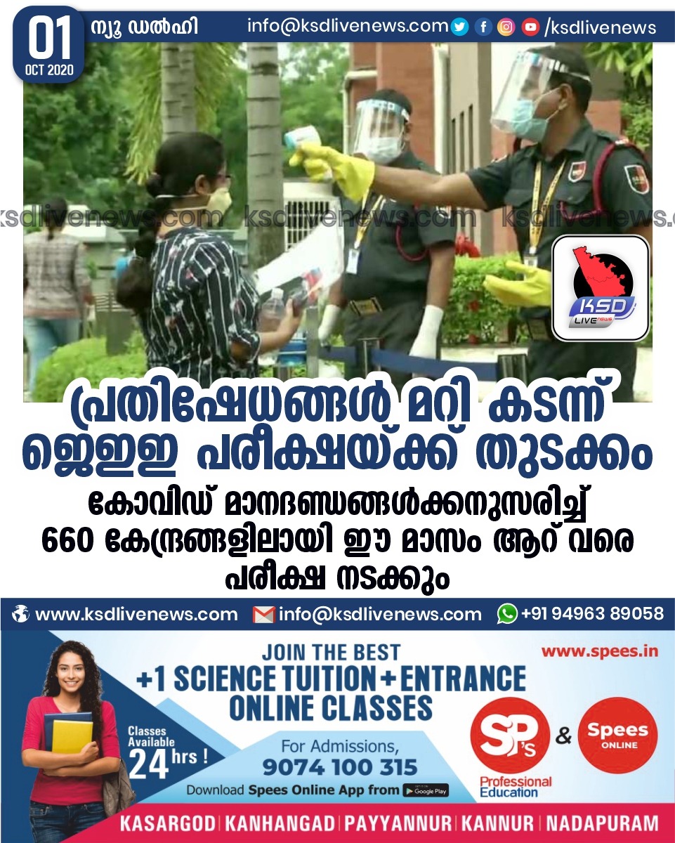 ദേശീയം പ്രതിഷേധങ്ങൾ മറി കടന്ന് ജെഇഇ പരീക്ഷയ്ക്ക് തുടക്കം ;കോവിഡ് മാനദണ്ഡങ്ങൾക്കനുസരിച്ച് 660 കേന്ദ്രങ്ങളിലായി ഈ മാസം ആറ് വരെ പരീക്ഷ നടക്കുംSeptember 1, 2020