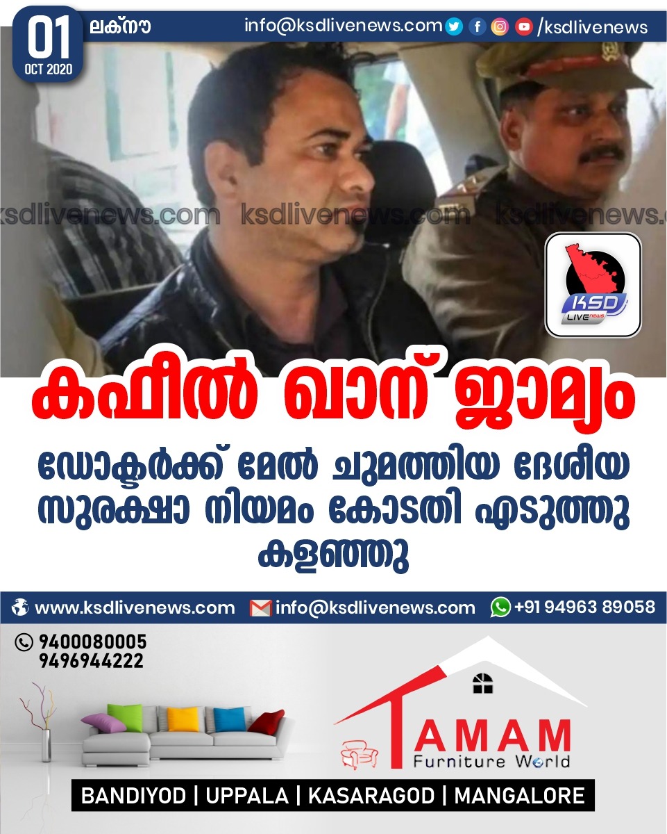 ദേശീയം കഫീൽ ഖാന് ജാമ്യം ; ഡോക്ടർക്ക് മേൽ ചുമത്തിയ ദേശ സുരക്ഷാ നിയമം കോടതി റദ്ദ് ചെയ്തുSeptember 1, 2020