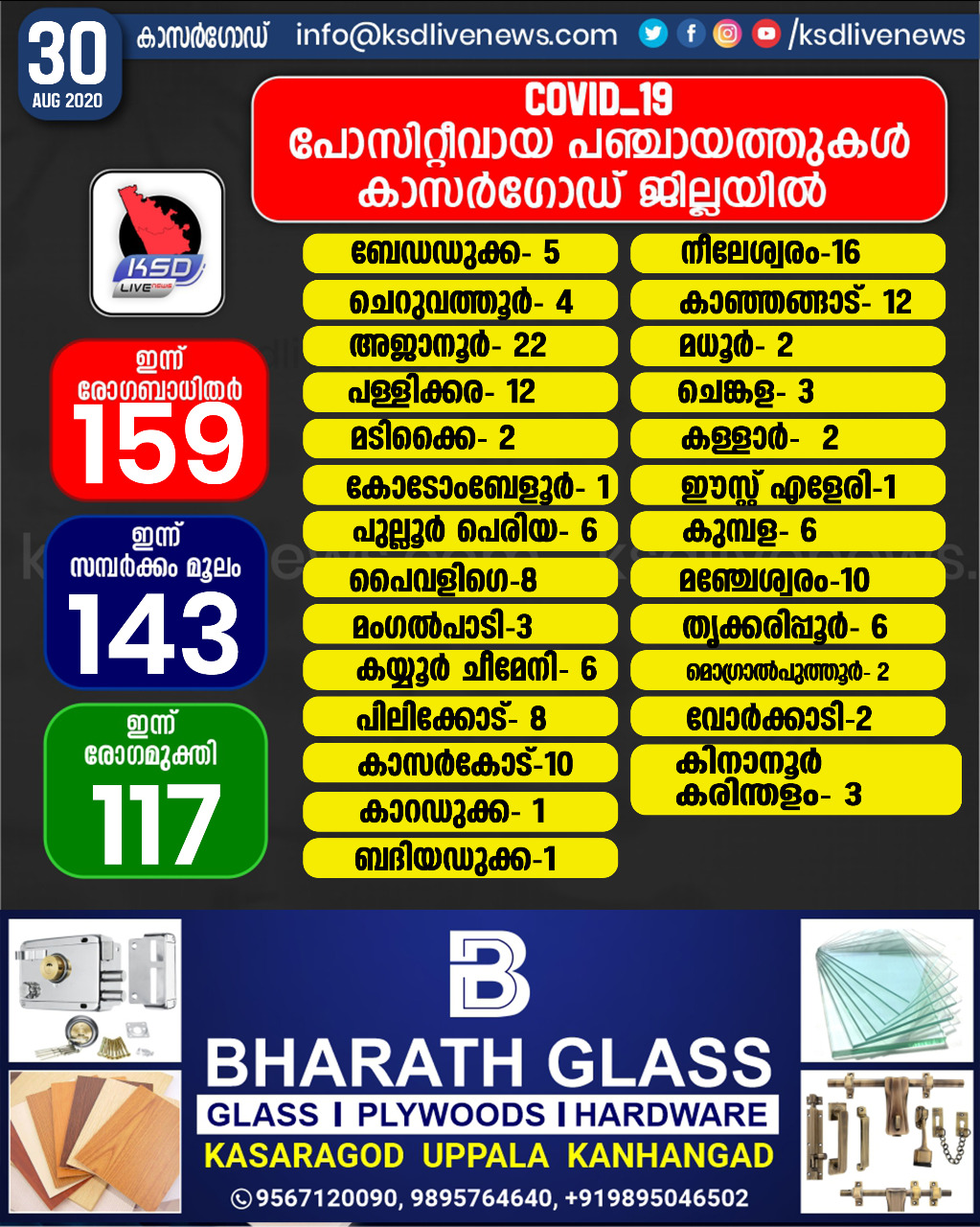 പ്രാദേശികം ഇന്ന് ജില്ലയിൽ കോവിഡ് പോസിറ്റീവായവരുടെ പഞ്ചായത്ത് തിരിച്ചുള്ള സ്ഥിതി വിവര കണക്ക്August 30, 2020