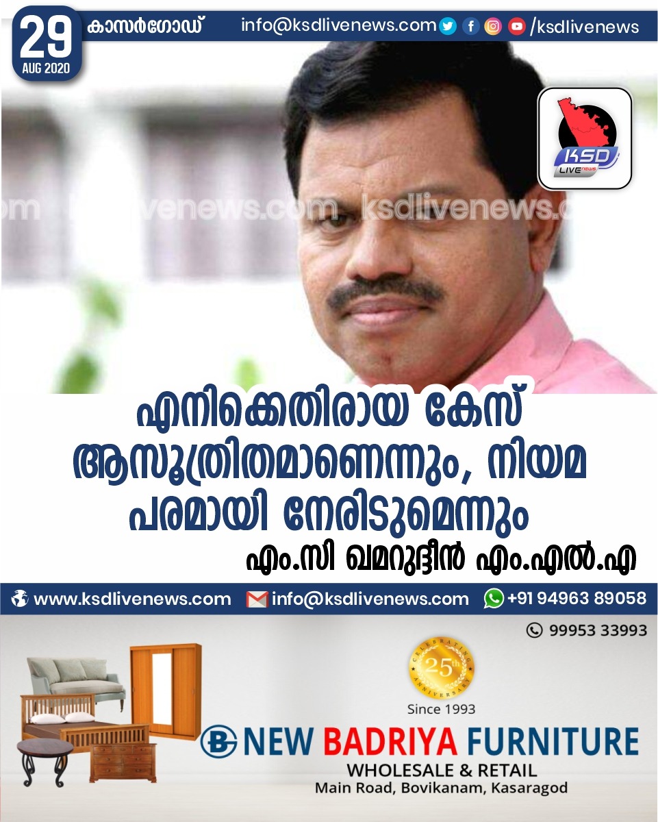 പ്രാദേശികം എനിക്കെതിരായ കേസ് ആസൂത്രിതമാണെന്നും , നിയമ പരമായി നേരിടുമെന്നുംഎം.സി ഖമറുദ്ദീൻ എം.എൽ.എAugust 29, 2020