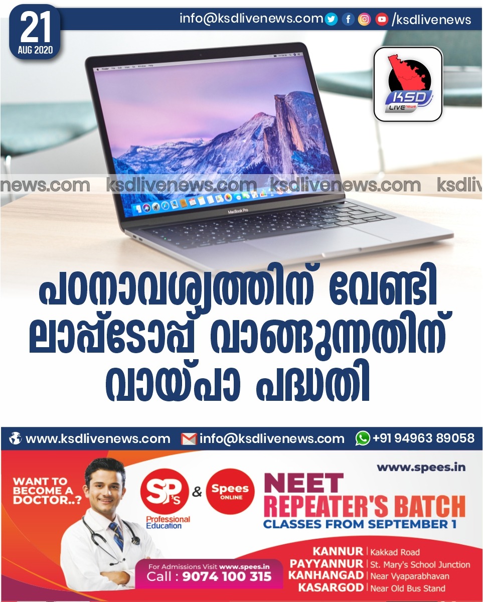 പഠനാവശ്യത്തിന് വേണ്ടി ലാപ്പ്ടോപ്പ് വാങ്ങുന്നതിന് വായ്പാ പദ്ധതി