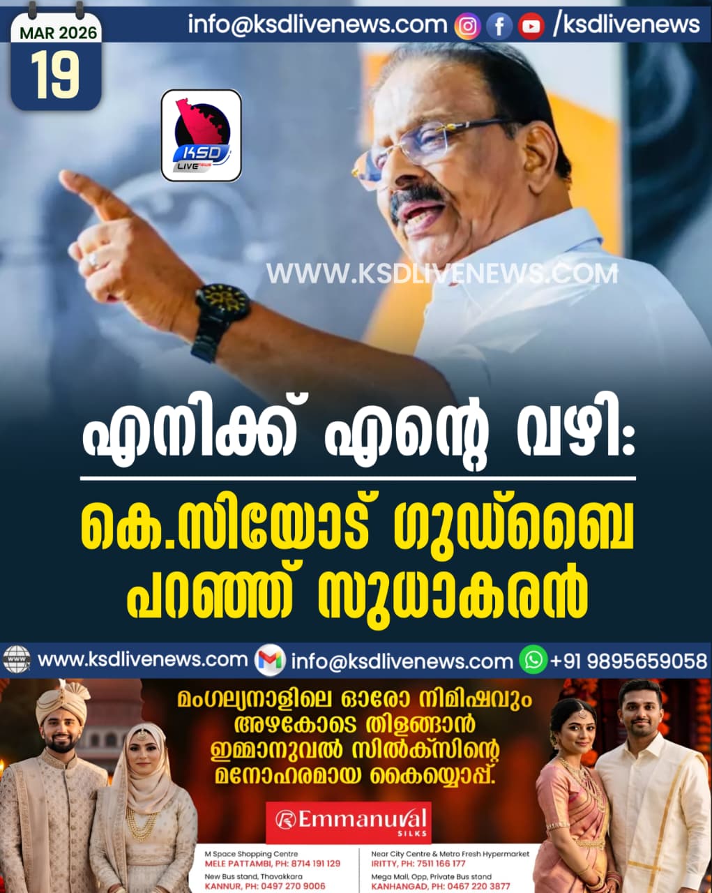 പ്രാദേശികം ഏതെങ്കിലും രാഷ്ട്രീയ പാര്ട്ടികളുടെ പരിപാടികളില് നിന്ന് മത പണ്ഡിതന്മാര് മാറി നില്ക്കണമെന്ന് പറയാന് ഒരു രാഷ്ട്രീയ കക്ഷിക്കും അധികാരമില്ലെന്ന് കാന്തപുരംJanuary 11, 2011