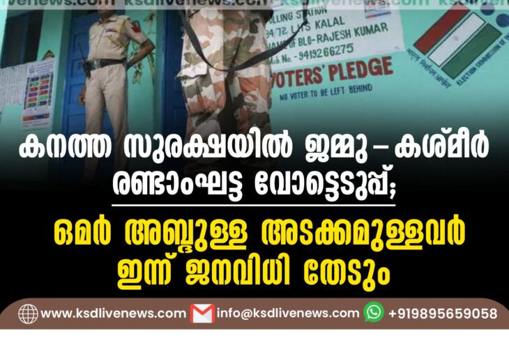 ദേശീയം കനത്ത സുരക്ഷയിൽ ജമ്മു-കശ്മീർ രണ്ടാംഘട്ട വോട്ടെടുപ്പ്; ഒമർ അബ്ദുള്ള അടക്കമുള്ളവര് ഇന്ന് ജനവിധി തേടുംSeptember 25, 2024