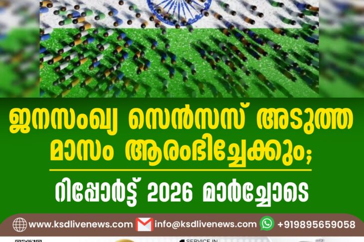 ജനസംഖ്യ സെന്സസ് അടുത്ത മാസം ആരംഭിച്ചേക്കും; റിപ്പോര്ട്ട് 2026 മാര്ച്ചോടെ
