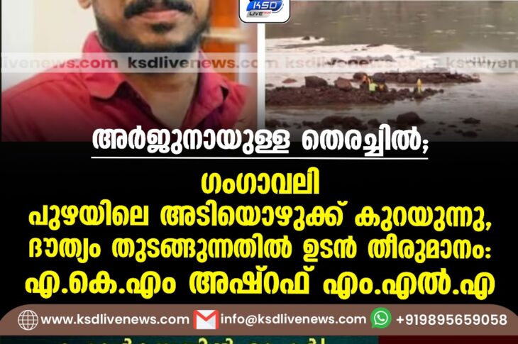 ദേശീയം അർജുനായുള്ള തെരച്ചിൽ; ഗംഗാവലി പുഴയിലെ അടിയൊഴുക്ക് കുറയുന്നു, ദൗത്യം തുടങ്ങുന്നതിൽ ഉടൻ തീരുമാനം: എ.കെ.എം അഷ്റഫ് എം.എൽ.എAugust 10, 2024