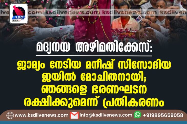 ദേശീയം മദ്യനയ അഴിമതിക്കേസ്: ജാമ്യം നേടിയ മനീഷ് സിസോദിയ ജയിൽ മോചിതനായി; ഞങ്ങളെ ഭരണഘടന രക്ഷിക്കുമെന്ന് പ്രതികരണംAugust 9, 2024