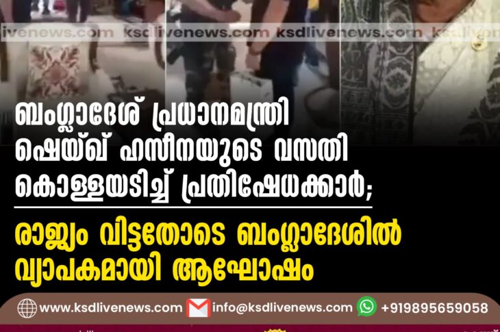 വിദേശം ബംഗ്ലാദേശ് പ്രധാനമന്ത്രി ഷെയ്ഖ് ഹസീനയുടെ വസതി കൊള്ളയടിച്ച് പ്രതിഷേധക്കാര്; രാജ്യം വിട്ടതോടെ ബംഗ്ലാദേശിൽ വ്യാപകമായി ആഘോഷം/വീഡിയോAugust 5, 2024