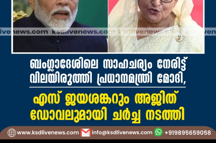 ദേശീയം ബംഗ്ലാദേശിലെ സാഹചര്യം നേരിട്ട് വിലയിരുത്തി പ്രധാനമന്ത്രി മോദി, എസ് ജയശങ്കറും അജിത് ഡോവലുമായി ചര്ച്ച നടത്തിAugust 5, 2024