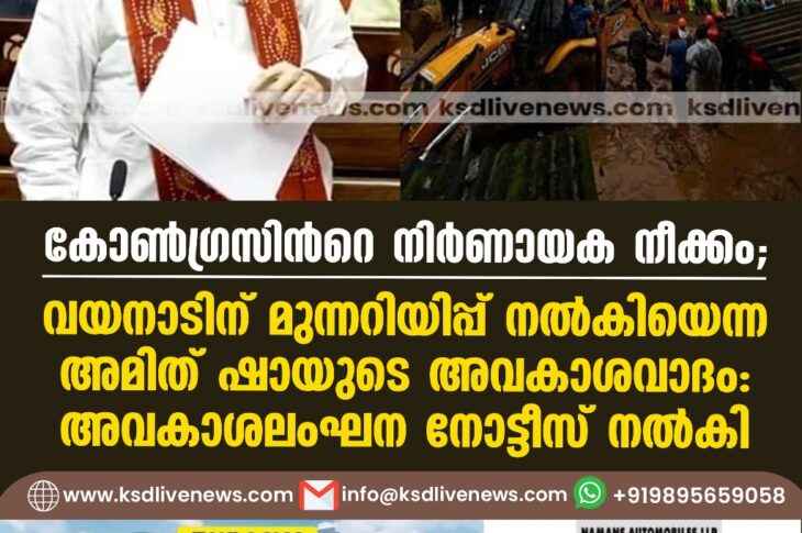 ദേശീയം കോണ്ഗ്രസിന്റെ നിര്ണായക നീക്കം; വയനാടിന് മുന്നറിയിപ്പ് നല്കിയെന്ന അമിത് ഷായുടെ അവകാശവാദം, അവകാശലംഘന നോട്ടീസ് നല്കിAugust 2, 2024
