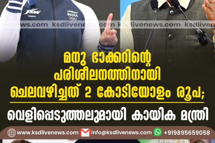 ദേശീയം മനു ഭാക്കറിന്റെ പരിശീലനത്തിനായി ചെലവഴിച്ചത് 2 കോടിയോളം രൂപ; വെളിപ്പെടുത്തലുമായി കായിക മന്ത്രിJuly 29, 2024