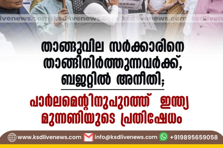 ദേശീയം താങ്ങുവില സർക്കാരിനെ താങ്ങിനിർത്തുന്നവർക്ക്, ബജറ്റിൽ അനീതി’; പാർലമെന്റിനുപുറത്ത് ‘ഇന്ത്യ’ മുന്നണിയുടെ പ്രതിഷേധംJuly 24, 2024