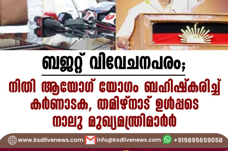 ദേശീയം ബജറ്റ് വിവേചനപരം, നിതി ആയോഗ് യോഗം ബഹിഷ്കരിച്ച് കർണാടക, തമിഴ്നാട് ഉൾപ്പടെ നാലു മുഖ്യമന്ത്രിമാർJuly 24, 2024