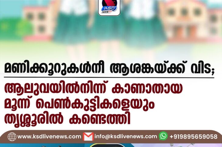കേരളം മണിക്കൂറുകൾനീണ്ട ആശങ്കയ്ക്ക് വിട; ആലുവയിൽനിന്ന് കാണാതായ മൂന്ന് പെൺകുട്ടികളെയും തൃശ്ശൂരിൽ കണ്ടെത്തിJuly 18, 2024